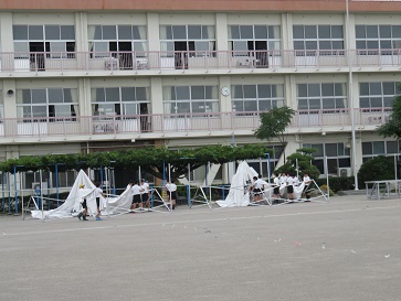 明日の本番に向け、5・6年生が中心となり、テント、器具、整地、くい打ち、草取りなどなどしっかりと取り組んでくれました。