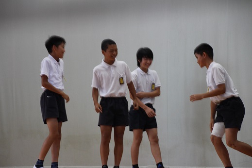 最後に、秋の交通安全運動の一環として、通学団の団長さんが劇を行いました。わき見をせず歩くことや、自転車は一列で走ることを呼び掛けてくれました。