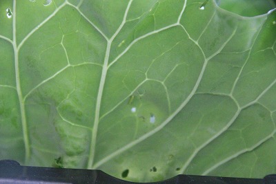 キャベツの葉っておいしんだよね…。(写真の中央に5㎜ぐらいの黄緑のもの)