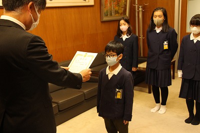 今日は、あいさいさん☆給食コンクール・愛西市給食キャラクターコンクール・税に関する習字の入賞者の表彰を行いました。受賞されたみなさん、おめでとうございました。【あいさいさん☆給食コンクール】