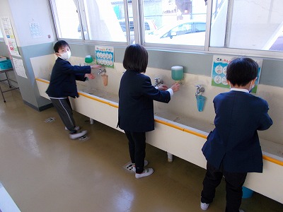 給食前には必ず手洗いをします。