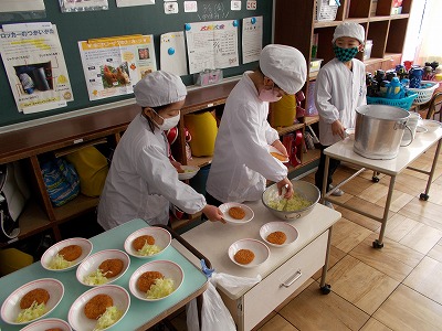当番で協力して配膳をしています。