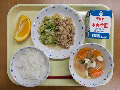 ところで、「豚肉の生姜炒め」のたまねぎ。「新たまねぎの甘みや食感が生きるように加熱したい」という私のイメージ通りの出来栄えでした。それを実現させてくれた調理員さん、ありがとうございました。