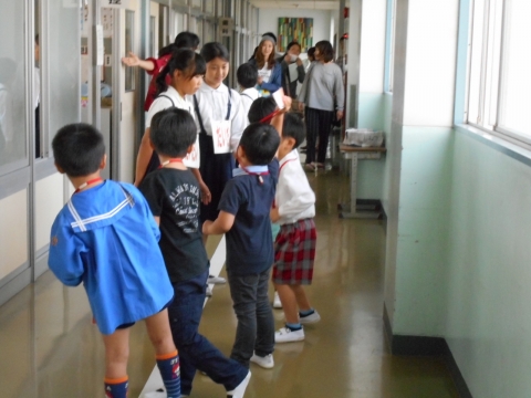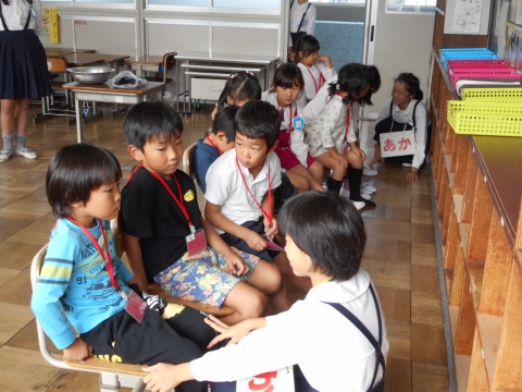 5年生の児童が新1年生になる皆さんのお世話をしました。