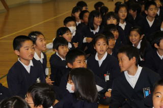 久しぶりの全校児童がそろった体育館、とても静かに式を始める準備が整いました。初めの着任式では、新たにいらっしゃった5名の先生方からご挨拶をいただき、初めて見る先生方に児童の目はキラキラとしていました。また、その後の始業式では、担任の先生の発表もあり、新しいクラスの仲間、新しい担任の先生と新学年をやる気に満ちた表情でスタートした1日となりました。
