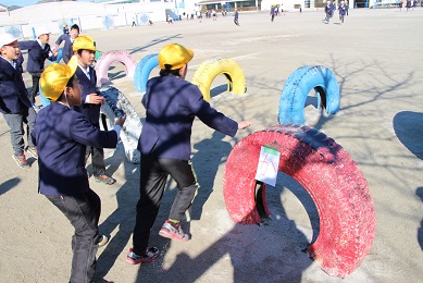 今日は「宝さがし」を行いました。運動場に隠されている文字を合わせて、言葉を作るゲームでした。2回目となり、高学年の進行はとてもスムーズでした。参加した子どもたちは、ルールは簡単でも問題が難しいこのゲームに四苦八苦していました。
