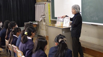 「まつぼっくり」さんによる読み聞かせが5年生で行われました。5年生学級委員が校長室まで迎えに来て、教室までボランティアの方を案内しました。高学年らしい頼もしい姿でした。相撲の『呼出し』に憧れる男の子を描いた「おれ よびだしに なる」中川ひろたか作と、「どろぼうがないた」杉下としひろ作でした。後者は、読み聞かせの後「このあと、泥棒はどうしたと思う?」という問いに、子供たちは想像をふくらませることができました。