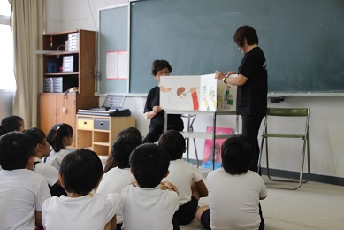中休み、2年生が集まり、絵本の読み聞かせ会が始まりました。いつもの「まつぼっくり」の方々が2冊の絵本をもってきてくださいました。1冊目はちょっと悲しい話の「やさしいライオン」。2冊目はしりとりのだいすきなおうさま」という面白おかしい話でした。集中して聞き、笑うところは笑う、すばらしい姿勢で読み聞かせ会が行われました。