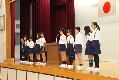 今日の朝礼では、後期児童会役員の認証と引継ぎが行われました。選挙で伝えた公約の実現に向け、意欲いっぱいの後期役員でした。また、前期の役員のみなさんも学校をよりよくしようと頑張ってくれました。お疲れ様でした。委員会等も後期に移っていきます。新しい役割を担い、活躍してくれることを願っています。