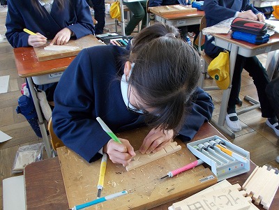 今日は6年生が図工の時間に、卒業制作のオルゴール箱づくりを行いました。6年間の思い出をテーマに、それぞれが考えた図案を箱のふたや側面に彫刻刀で浮き彫りにしていきました。思い出に残る素敵な作品になるといいですね。