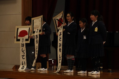 生活委員より、学校生活のきまりについてクイズや寸劇で紹介してもらいました。守れるように、頑張りましょう。