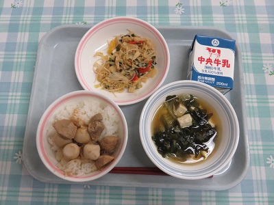 ルーローハン、牛乳、ビーフン炒め、韓国風わかめスープ