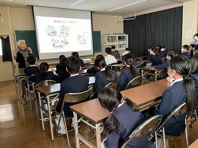 海部地区で保護猫活動をしている「ねこネットあま」さんから講師をお招きし、保護猫から考える命の大切さについて出前授業をしていただきました。地域猫の保護活動について知り、命を飼うことの難しさや責任について考えました。