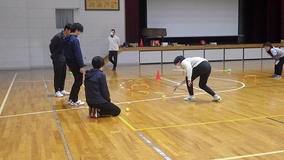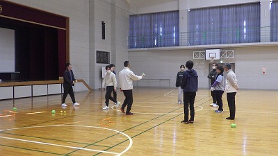今日は、七宝北中学校の上赤裕司先生を講師として招き「どの子も参加できる魅力的な体育科の授業について」をテーマに、現職教育を行いました。子供たちも楽しめるゲートボールでは、2チームに分かれ、作戦を考えたり、互いに声を出し合ったりし、楽しみながら、授業づくりのポイントを学びました。子供たちに体を動かす楽しさを味わわせ、寒さに負けない体作りを目指します。