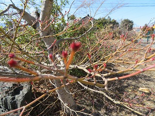 ところが、今週は一変。昨日から日差しに春を感じるようになりました。校庭の木々もよく見ると、春の準備をしていました。
