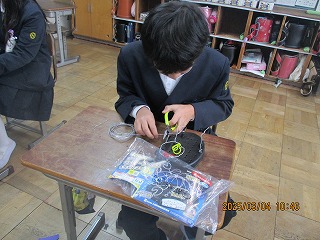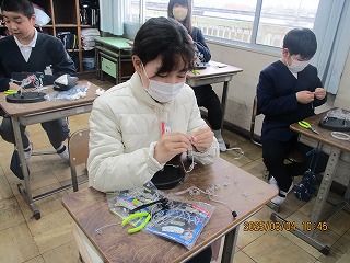 初めて使うペンチでしたが、直角に曲げたり、くるくるとまわしてうずまきのような形にしたりして、楽しく作品を作りました。