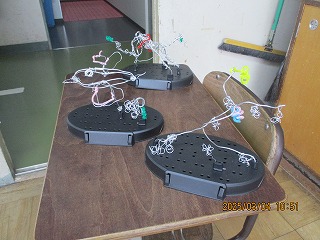 ペンチの使い方を学習し、針金に触れていろいろな立たせ方を試しました。