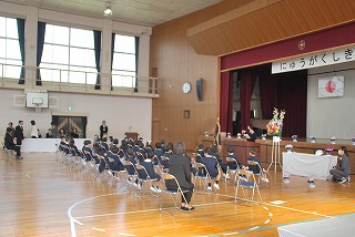 33名の元気な一年生は、上手に礼をしたり、校長先生の話をよく聞いたりして、立派に式に参加することができました。