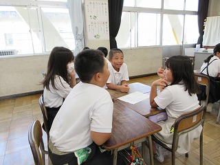 3年生は学級活動で、「ピースタイム」の活動に取り組みました。この活動は、友達の話をうなずきながら聞き、友達の新たな一面を知ることをねらいとしています。自分とは違う友達のよさを知り、どの子も嬉しそうな表情をしていました。