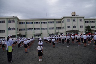 今日は、運動会にむけての全校体育がありました。全学年そろっての体育だったため緊張しながらも普段の練習の成果を発揮することができました。小学校初めての運動会が楽しい思い出になるように練習を頑張ってほしいです。