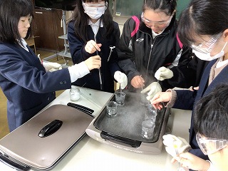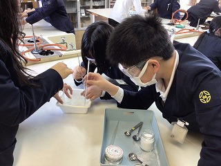5年生は理科の授業で「ものの溶け方」の実験をしました。湯の温度で塩やミョウバンの溶け方の違いがあることに気づくことができました。班で協力して手際よく実験をしました!