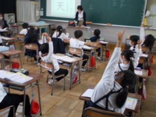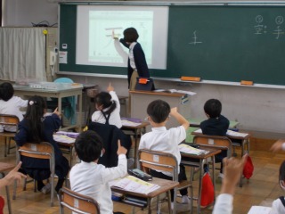 1年生が漢字の勉強に取り組んでいます。つい数か月前までは平仮名の勉強をしていた1年生も、すっかり成長していくつか漢字が書けるようになりました。「天」という字を書いていたとき、「天ぷらの天だね」と話したら、みんな大笑いしていました。楽しみながら漢字の勉強を頑張っています。