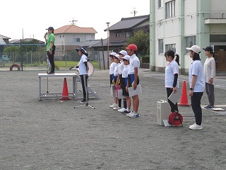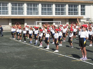 1時間目に運動場で全校練習を行いました。