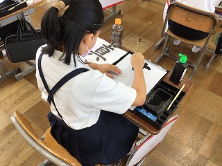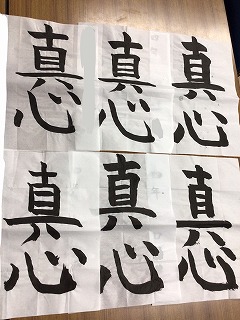 納得がいくまで筆を執り、半紙の空いているところにも練習する姿がみられました。