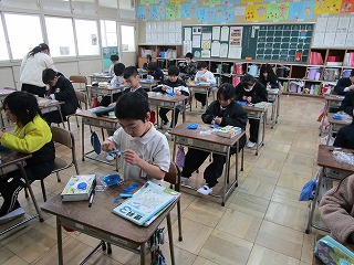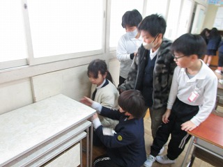 今日の理科では、じしゃくを使って教室やろうかにある「じしゃくとくっつくもの」を探しました。子どもたちはいろいろな物にじしゃくを近づけ、調べました。「消火せんもじしゃくとくっつくんだ!」などの驚きの声も多く、楽しみながら学ぶことができました。