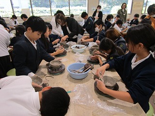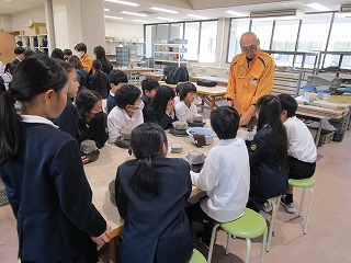 陶磁美術館では、職員の方のレクチャーを聞き、真剣にお茶碗を作る姿が見られました。1か月後の完成が楽しみです。