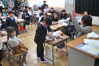 この活動は、2年生が生活科の学習の一環として企画し、1年生を招待しました。手作りのおもちゃで一緒に遊ぶ中で、笑顔があふれる時間となりました。