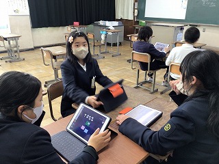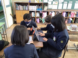 1月21日(水)に総合的な学習の授業で、2月に発表する防災についての原稿やスライド作りをグループで取り組みました。誰が見ても分かりやすいスライドを作りたいと意気込む児童がいました。当日の発表会が楽しみです。