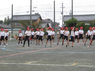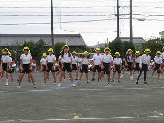 月曜、朝始業時に、約5分間草平体幹体操&草平体幹トレーニングに全校で取り組んでいます。2種類のプログラムを行っています。