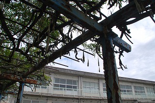 よい気候になりましたので、草平小学校の藤棚を剪定し始めました。