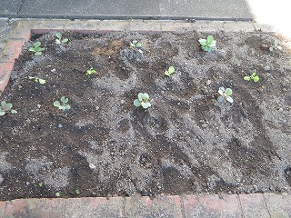 草平ファーム前の花壇には、3種類の葉牡丹の苗がかわいらしく並んでいます。