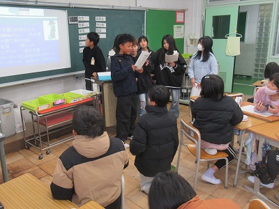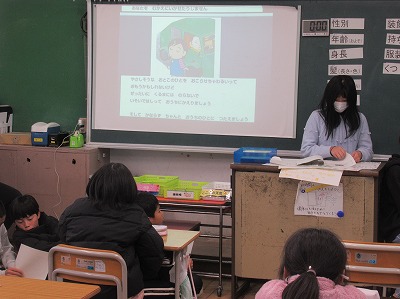 6年生が、「こんなときどうするクイズ」や、「お伝えゲーム」「絵本読み聞かせ」を行い、「みんなの勇気と判断・行動が、一番確かな防犯なのだ!」ということを伝えてくれました。3・4年生が楽しく学ぶ様子が見られました。6年生のみなさんがんばりました。