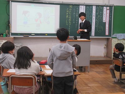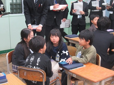 道徳の授業です。他の学校の先生も勉強をしに見えました。