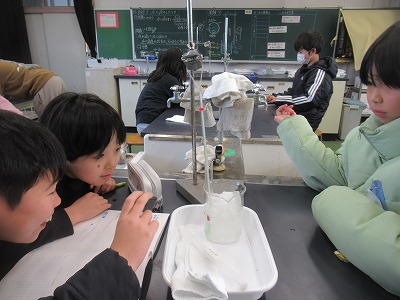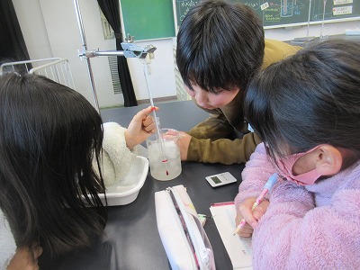 理科では「水のすがたと温度」の単元を学習しています。今回は「水を冷やしたとき」を実験しました。