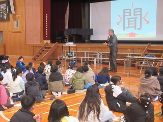 また、集会の部では、全校児童といっしょに講師をお招きし、「みんなのコミュニケーション入門」の演題でお話をききました。