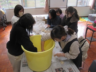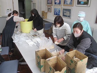 保護者ボランティアとして5名の参加者に、出来上がったポン菓子を全校児童に袋分けしていただきました。さらに、卒業・入学時の掲示物に使用する『お花紙』もつくっていただきました。ありがとうございました。