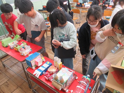 図画工作で製作したものを、みんなで発表会&鑑賞会をしました。