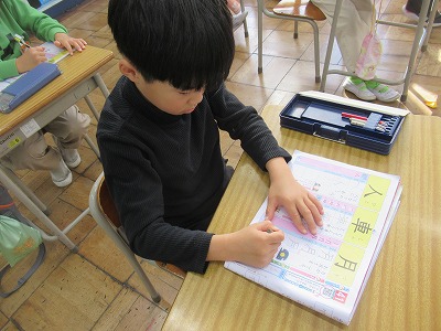 国語では、カタカナと漢字の学習をしています。漢字の書き順は、覚えたことがずっと残ってしまっていくので、最初が肝心です。読める、知ることが増えるのはうれしいことなので、日常でも使えるように楽しさを実感させていきたいと思います。