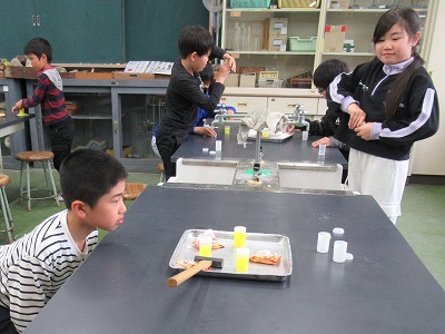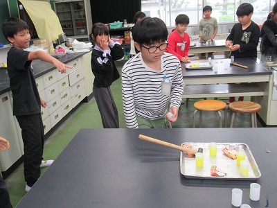 ※理科室でワクワクドキドキの実験をしました。さて、何をしているのでしょうか?