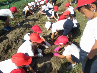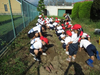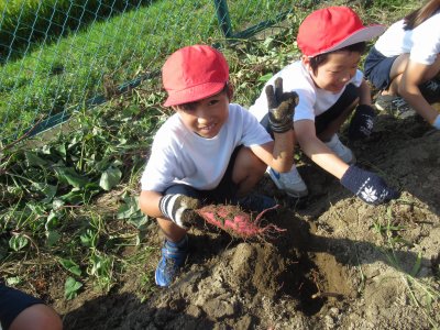 収穫した芋は、本日子どもたちが(1人2本ほど)持ち帰ります。ぜひ、家族の食卓にて話題にしていただければ幸いです。