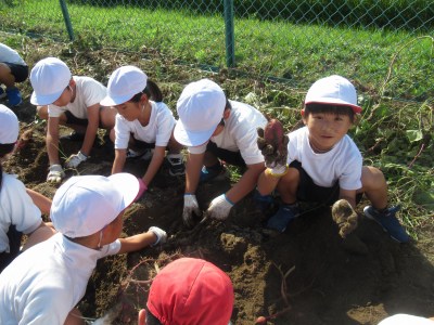 たくさん収穫しようと、熱心に掘り、芋を探しました。