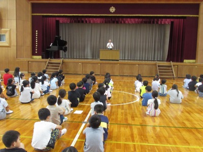 今日から後期のスタートです。校長先生より、「自分でできなかったところをできるように」「いいところをさらにのばしていくこと」「次の学年・学校を見越してがんばりましょう」とお話がありました。
