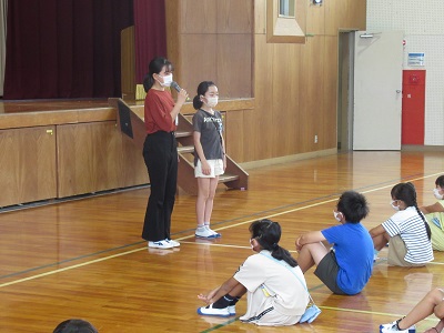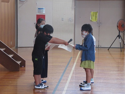 その後、児童会役員さんから金曜日に行われる、花をいっぱいにしよう運動の紹介がされました。