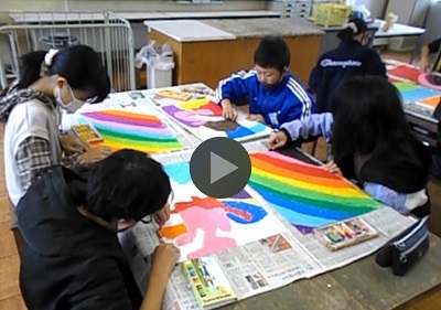 6年生の子どもたちが図工の時間にクレヨンで思い思いの色を使って画用紙を塗りつくしていました。