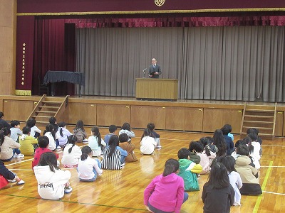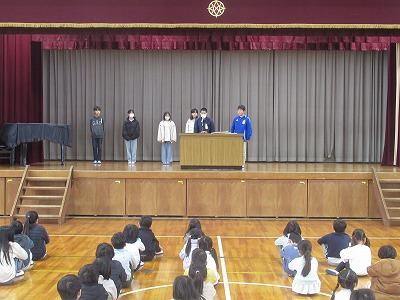 校長先生より、「今日は2/3『立春』です。暦の上では今日から春ですが、今週は寒い予報なので、健康に気を付けて過ごすように」お話がありました。