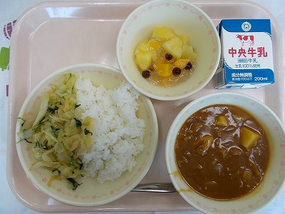 今年度最後の給食でした。人気メニューの一つのカレーライスに